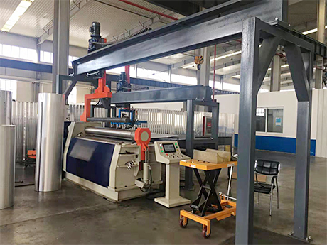 全自动四辊卷板机生产线是在四辊卷板机卷板的基础上研发的自动化金属卷圆加工生产设备,实现了板材自动分层,自动取料,自动上料,自动对料,自动进料,自动卷制,自动出料等全过程自动化生产。该设备自动化程度高,能有效保障产品质量,提高了生产效率,降低了生产成本,减轻了劳动强度。被广泛应用于快速大批量制造薄壁管,汽车油桶、通风管道、烟囱、过滤器,太阳能热水器,汽车排气管,储液(气)罐等等。